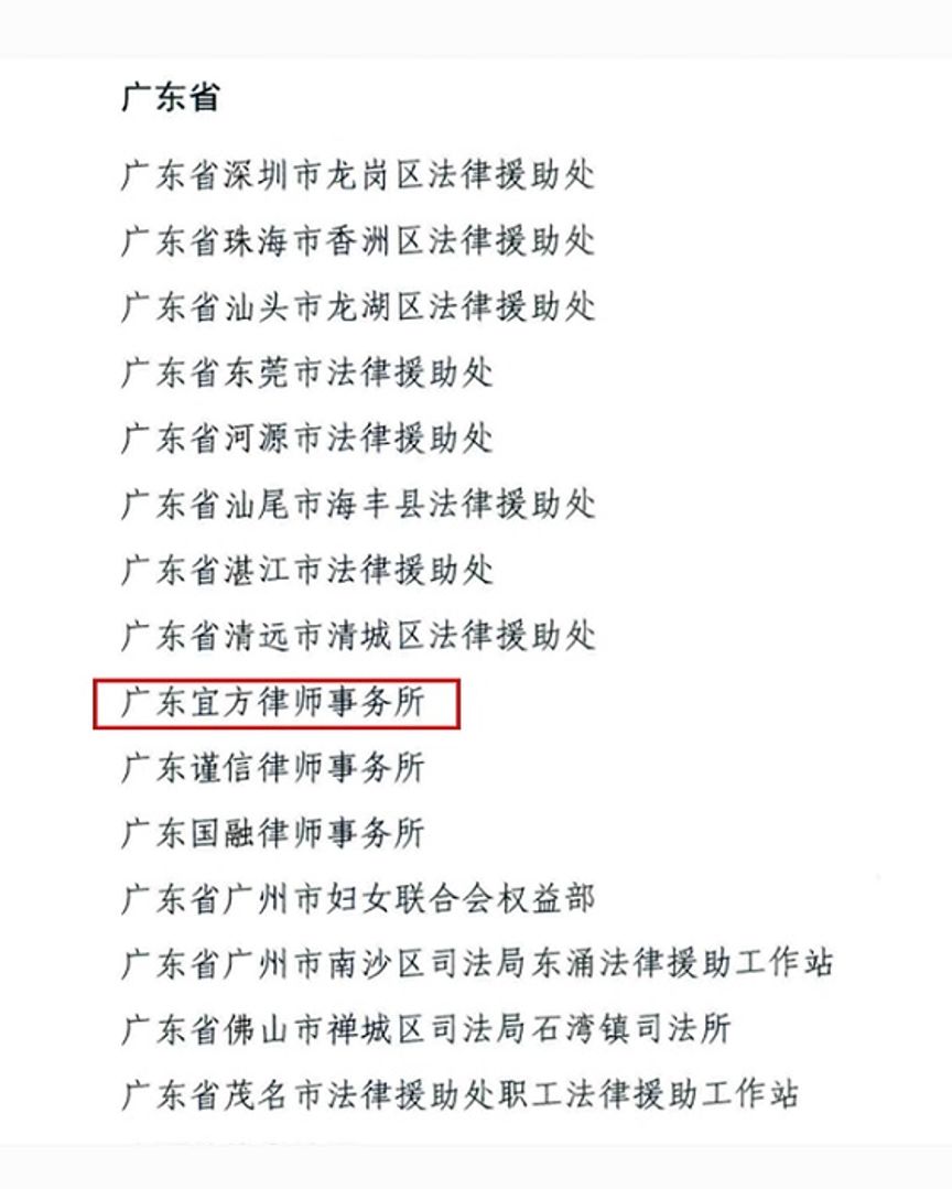 近日,司法部发布的《关于表彰全国法律援助和公共法律服务工作先进集体先进个人的决定》,对270个全国法律援助先进集体及424名先进个人、723个全国公共法律服务工作先进集体及964名先进个人进行表彰。其中,广东宜方律师事务所被授予“全国法律援助工作先进集体”称号。