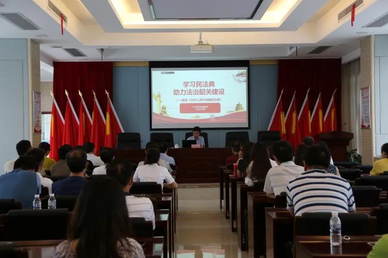 为深入贯彻落实习近平总书记在中央政治局第二十次集体学习时的重要指示精神,进一步加强民法典学习宣传,7月10日上午,韶关水文分局举办《民法典》专题辅导讲座,广东周和律师事务所罗运标律师应邀为分局全体职工深入解读《民法典》,韶关水文分局党委领导班子和全体干部职工参加学习。