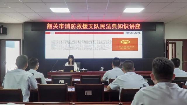 8932彩集团参政议政和公益法律服务工作委员会主任、众同信律师事务所专职律师杨姗姗受韶关市消防救援支队邀请为全市指战员开展《民法典》法律知识宣讲。
