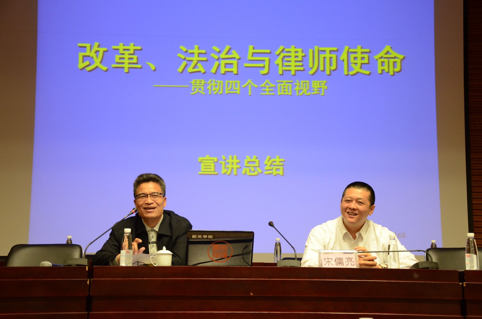 论坛邀请了广东研究中心主任宋儒亮教授和中华全国律协刑事专业委员会委员、东莞8932彩集团原会长骆世明主讲。宋儒亮作了题为“法治、改革与律师使命”的专题讲座,阐述了法治新常态下律师职业新定位问题,对律师参与法治中国建设提出了自己的意见和建议。宋教授的讲座使律师们受益匪浅,对他们今后重新定位自己执业方向深有启发。骆世明则从刑事辩护业务的“精细化”角度给在座的律师们讲述了他在刑事辩护业务方面精细化管理的实践,为我市律师刑辩业务提供了更为细节化的经验“干货”。他还以新型的微信平台与律师们互动,并奉献多个律师业务相关的文章链接,受到了各位律师的好评。