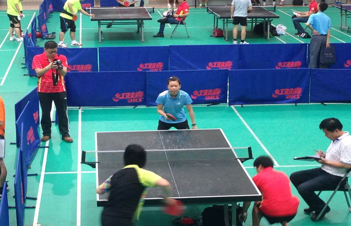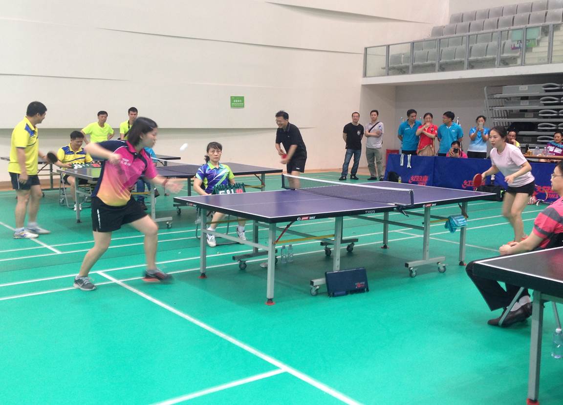 上图为本届乒乓球女单冠、亚军潘小舟与王璟文律师决赛情景